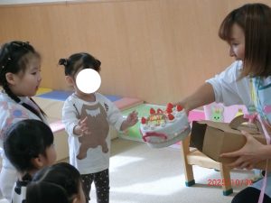 ♪ハッピーバースデートゥーユー♪の歌をうたい、みんなでお祝いをしました!