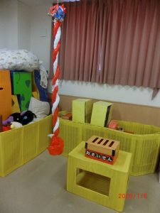 お正月ならではの遊びのコーナーをたくさん作り、子どもたちといっぱい遊びます。
