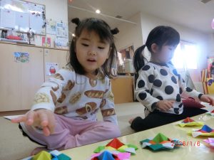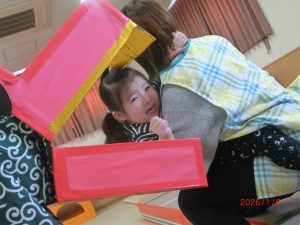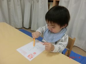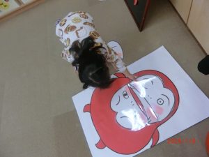 大好きなだるまさんが色々な表情になり、子どもたちは大笑いして作っていました。