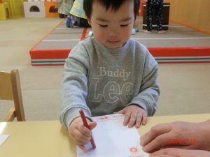 まずは年賀状製作のコーナー。