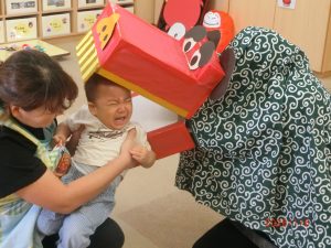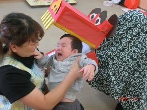 ちょっぴり怖くて泣いちゃうお友だちもいましたが、獅子舞に噛まれることで1年をよりよく過ごすことができると言われているので、どの子も頑張って噛まれることができました。